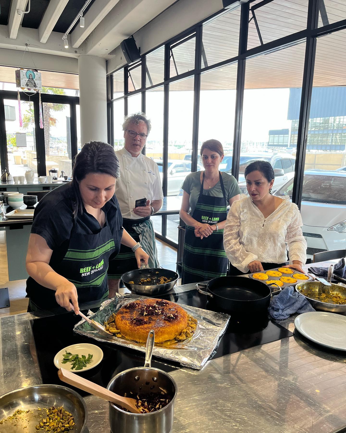 Today was one of those days at @homeland.nz Restaurant: community cooking day😀. Iranian community got the chance to demonstrate how to cook a #persiandish (#tahchin)to @chefpetergordon and his team. We also learned how to make #cremebrulee from Peter. Everyone enjoyed today’s program. We cooked and ate together and meanwhile there were lots of talks and laughter.
